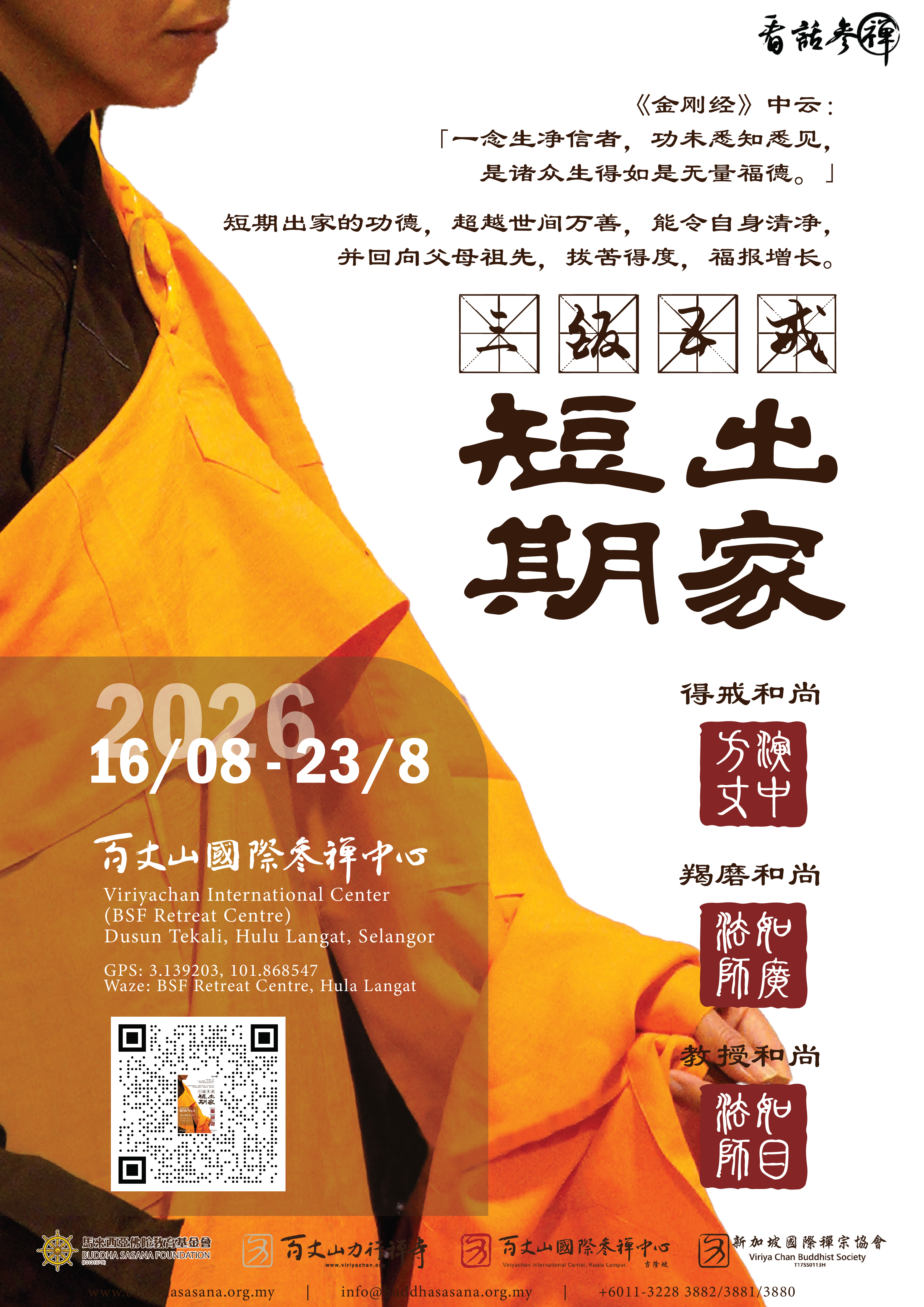 2026 三皈五戒短期出家 [16/08/2026~23/08/2026]