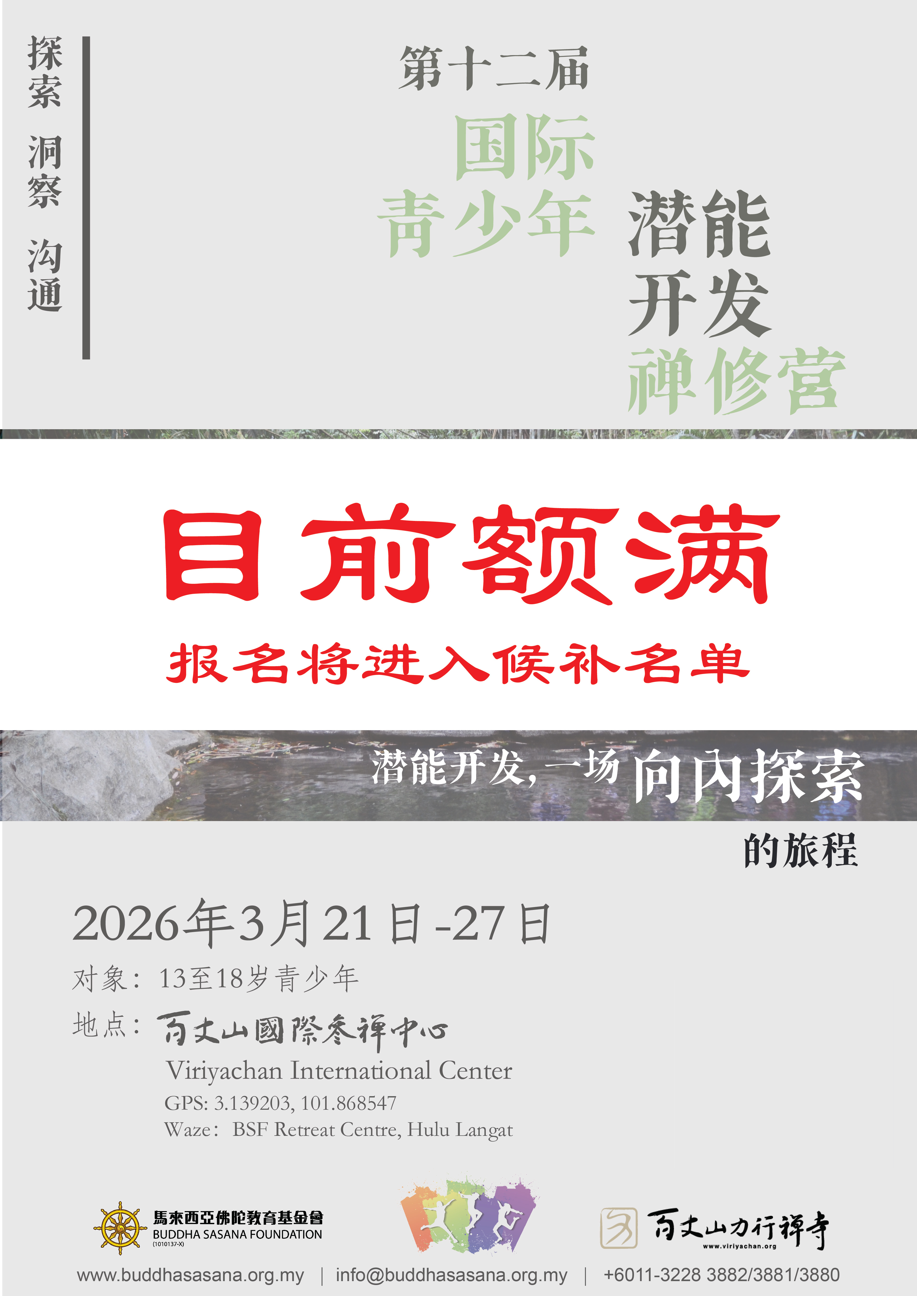 2026 第十二届国际青少年潜能开发禅修营(候补) [21/03/2026~27/03/2026]