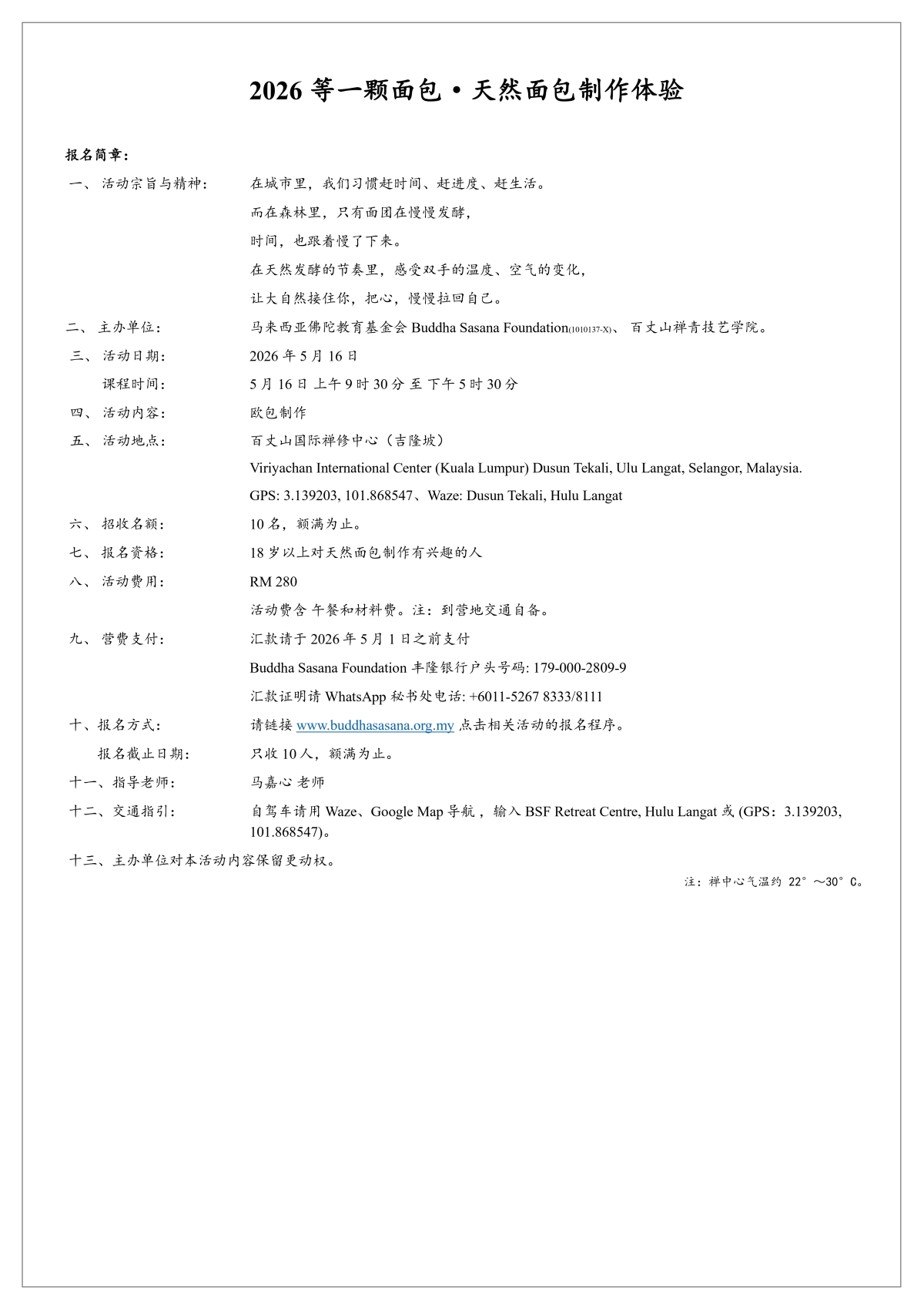 / Event Information 活动基本讯息